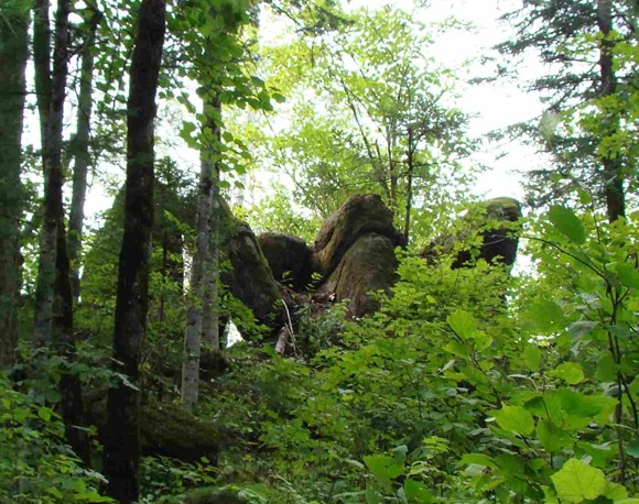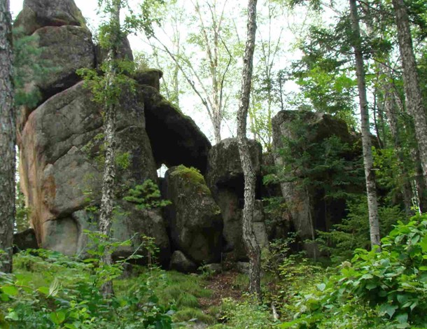 位于距市區(qū)7公里處。在一片密林中,有一簇平地拔地而起,以一塊塊花崗巖巨石砌成的石峰,高大雄偉,其形似柱,稱謂石林。石林由六座石峰組成,南二北四。北面四座一字梯形排列,一高近丈,二高近二丈,三高平二丈,四高一丈半。二峰端長有蒼松一株,似示最高。各峰成形惟妙,二三座石峰間相距極狹,僅尺許,縫如刀切,稱“一線天”。在第四座石峰南5米處,還有兩座石峰,相距不足1米,微低。遠(yuǎn)望,形如雄師臥地,前身支起而后身匍匐,似忠誠的護(hù)林衛(wèi)士。第二叢樹林,在第一叢以東偏南,相距約百米。由三座石峰構(gòu)成,北二南一。北西兩座甚是匹配,高九仞余,其中一座有三個峰端,有護(hù)林人“家業(yè)興旺”之寓。沿三峰石南側(cè)攀緣而上,至高6米處,鉆過兩塊大石堆成的石門,便到了石峰東側(cè)的平臺,臺成弧狀,可納十余人。臺下是陡峭絕壁,其險令人目眩。臺之對面,有一塊呈圓鼓狀、低于平臺1米之大石,可容四人并坐,版權(quán)所有山東聊城聊之旅國際旅行社有限公司,轉(zhuǎn)載必究!其底部與三峰石相連,有狹道與平臺相通。登石眺望,可觀得西南方向約20米處的丈余高之石峰,似一擎天巨柱……石林,仿佛小興安嶺建設(shè)者之雄資,在廣袤密林中,手捧奇花異草,伴著山間小溪流水淙淙,迎候著遠(yuǎn)方的客人。