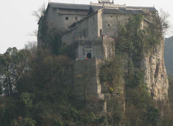 天臺山伍龍寺是屯堡古寺廟建筑的典范,它雄峙于一峰獨秀的天臺山上,四周城墻懷抱,是軍事功能和宗教功能合一的建筑。伍龍麉是屯堡古寺廟建筑中保存最完整的明清建筑群。它始建于明萬歷十八年(公元1590年),被建筑專家贊譽為“石頭建筑的典范”、“深山明珠”。它的結構分內(nèi)外兩部分,外部均用石塊砌壘,與山巖由于風化造成的水平線十分接近,渾然一體,表現(xiàn)出粗獷的性格,墻壁上開極少的貓窗。