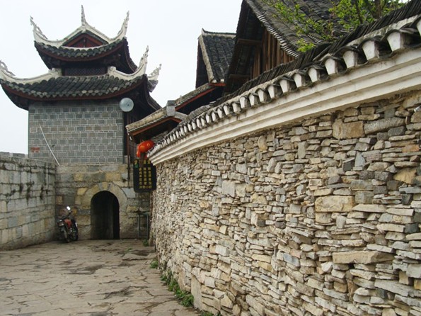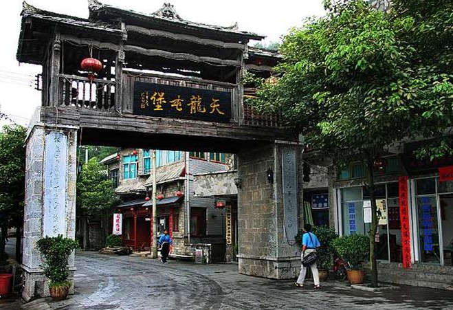 天龍屯堡古鎮(zhèn)位于貴州省西部平壩縣,喀斯特地貌大山深處,有天臺山、龍眼山兩山脈,距貴陽市72公里。這里地處西進(jìn)云南的咽喉之地,在元代就是歷史上有名的順元古驛道上的重要驛站,名“飯籠驛”。明初時(shí),朱元璋調(diào)北鎮(zhèn)南,在這里大量屯兵,兵來自江浙漢族,本世紀(jì)初被當(dāng)?shù)厝迨扛拿麨?ldquo;天龍屯堡”。