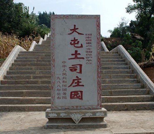 始建于清道光年間(公元1821一1850年),占地5000余平方米,建筑面積1200平方米,坐東向西,依山按中軸對(duì)稱三路構(gòu)筑布局,逐級(jí)升高,縱深遞進(jìn),呈長(zhǎng)方形。相傳是彝族土司余象儀所建,后經(jīng)余達(dá)父擴(kuò)建始成今狀。它依山勢(shì)而建,面臨緩坡低平的臺(tái)地。莊園整體布局為中軸大體對(duì)稱的大規(guī)模三路構(gòu)筑,各路皆有三重堂宇。左路建筑有東花園、糧倉(cāng)、繡樓等。東花園也稱“亦園”,用于接待客人。園內(nèi)有花圃客房等,其建筑十分精美?;ㄆ藻e(cuò)落有致,客房裝修華麗,院壩青石鋪就,院墻彩繪粉飾,古色古香,十分幽雅。中路建筑有大堂、二堂和正堂,各路堂宇之間均有石壩或內(nèi)墻間隔。高大的磚筑院墻,墻檐下砌筑斗拱,顯得古樸厚重。墻外四周分別筑有碉堡6座,各有其形,各有其用。猶可想見(jiàn),當(dāng)年的土司莊園守備森嚴(yán),肅穆莊重。院內(nèi)進(jìn)深80余米,橫寬60余米,整個(gè)占地面積6000余平方米,建筑布局層層深進(jìn)、重重冶高,氣勢(shì)宏偉壯觀。其石作、木作以及家具雕刻的各類圖紋具有鮮明的彝族文化藝術(shù)特征,是研究民族、民俗學(xué)的珍貴實(shí)物資料。傳說(shuō)當(dāng)年參加修筑莊園的近300名工匠歷時(shí)3年之久方才大功告成。解放后莊園先后為大屯鄉(xiāng)政府、龍場(chǎng)中學(xué)等單位使用。1984年由國(guó)務(wù)院公布為全國(guó)重點(diǎn)文物保護(hù)單位。1985年大堂不慎失火燒毀,1994年國(guó)家文物局撥款60萬(wàn)元進(jìn)行維修,版權(quán)所有山東聊城聊之旅國(guó)際旅行社有限公司,轉(zhuǎn)載必究!第一期工程恢復(fù)了大堂、西花園等建筑。有機(jī)會(huì)來(lái)到大屯土司莊園的人們,無(wú)不為這古樸典雅、莊重宏偉的建筑贊嘆,無(wú)不為這瑰麗多姿、技藝精湛的藝術(shù)所陶醉。她恰如一部凝固的音樂(lè)作品,使人如癡如醉,大有“余音繞梁”之感。層層院落,一亭一院一個(gè)景,千姿百態(tài)各具特色。大廳古樸莊重,花園千嬌百媚,水榭玲瓏秀美,樓臺(tái)亭亭玉立。既有古代殿宇的風(fēng)格,又不乏彝家建筑的氣派,真可謂是“十步一個(gè)景,一景一重天”。漫游在花園小徑,流連于亭臺(tái)樓閣,仿佛置身仙山瓊閣。使人倍感新奇,樂(lè)而忘返。