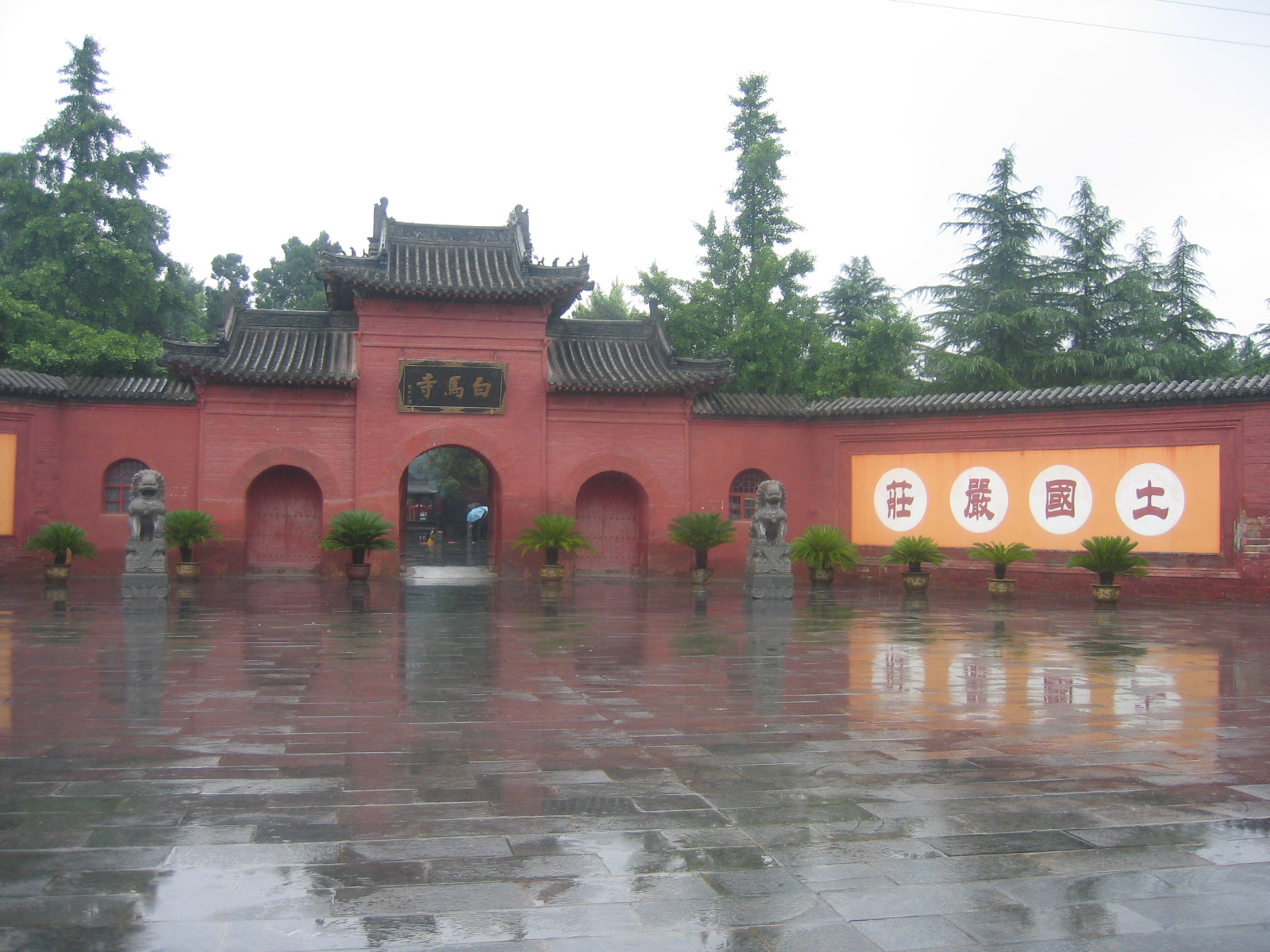 洛陽白馬寺[2]為中國(guó)第一古剎,世界著名伽藍(lán),乃佛教傳入我國(guó)后官辦的第一座寺院,被中外佛教界譽(yù)為"釋源"、"祖庭"。白馬寺創(chuàng)建于東漢永平十一年(公元68年)。史載:東漢永平七年,漢明帝劉莊因夜夢(mèng)金人,遣使西域拜求佛法。公元六十七年,漢使及印度二高僧?dāng)z摩騰、竺法蘭以白馬馱載佛經(jīng)、佛像抵洛,漢明帝躬親迎奉。公元六十八年,漢明帝敕令在洛陽雍門外建僧院,為銘記白馬馱經(jīng)之功,故名該僧院為白馬寺。 白馬寺座北面南,總面積二百余畝,其主體建筑有:天王殿、大佛殿、大雄殿[2]、接引殿、毗盧閣五層殿堂及中國(guó)第一釋迦舍利塔。白馬寺是一處保存完整、古色古香的古建筑群。1961年被國(guó)務(wù)院公布為第一批重點(diǎn)文物保護(hù)單位。1983年,被國(guó)務(wù)院確定為漢族地區(qū)佛教全國(guó)重點(diǎn)寺院。2001年1月,被國(guó)家旅游局評(píng)為首批4A景區(qū)。