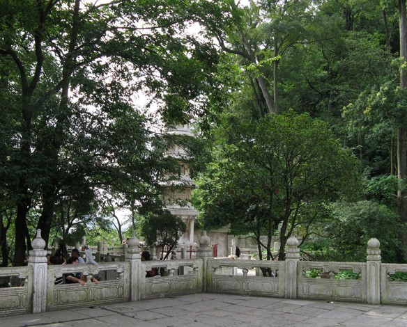 大殿后有一高臺(tái),前立二碑,乃朱德、董必武游黔靈山詩(shī)碑,碑后石壁嵌有多塊鐫刻,撰者為乾隆初年云貴總督吳達(dá)菩、貴門州巡撫劉藻、赤松和尚等。弘福寺不僅殿樓林立,還間有“風(fēng)尺亭”畫廊、“月明池”、“生生泉”“望城臺(tái)”等。寺后毗盧峰下有塔林,為弘福寺歷代祖師及僧人、居士之靈骨安藏處,有名可考者計(jì)有赤松、瞿脈、參之、惺慧、光燦、弗云、湛然、柏青、心月、智明、慈云、覺崇。