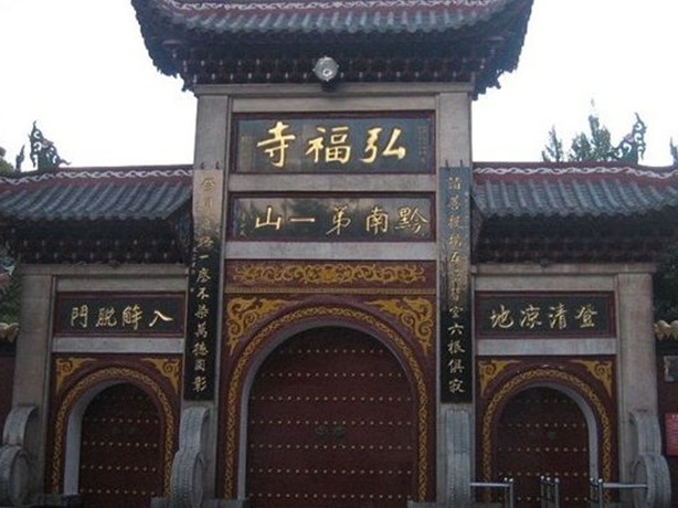 弘福寺位于貴州省貴陽(yáng)市西北的黔靈山上,距市中心約1.5公里。為赤松和尚(1634-1706年)于清康熙十一年(1672年)所創(chuàng)建。赤松,俗姓韓,法名道領(lǐng),號(hào)赤松。其先由浙遷長(zhǎng)沙,經(jīng)潼川,后隨父定居貴陽(yáng)。赤松少習(xí)儒,性嗜佛,20歲長(zhǎng)齊剃度,遍參高僧,頓悟佛旨;35歲在貴陽(yáng)白云寺閉門修學(xué),三年出關(guān),名揚(yáng)全省,僧俗共仰。赤祖為求靜修之地,遍游貴陽(yáng)諸山。在1672年,捫蘿拊葛,登上大羅頂(今黔靈山),見萬(wàn)峰環(huán)繞,中結(jié)平原,堪為供佛道場(chǎng),遂立志在上建剎。士司羅妙居士喜舍其地,約四平方公里;貴州巡撫曹申吉為工程督導(dǎo);赤松親自操勞,版權(quán)所有山東聊城聊之旅國(guó)際旅行社有限公司,轉(zhuǎn)載必究!灰頭垢面,積三十二年建成梵剎。原寺中軸線上有山門殿、天王殿、觀音殿、大雄寶殿、藏經(jīng)樓;兩旁有方丈苑、尊客寮、如意寮、廚倉(cāng)、禪堂、云水堂、戒堂等,占地約12000平方米,樓臺(tái)亭閣,莊嚴(yán)肅穆,道場(chǎng)興盛,禪風(fēng)大振,常住僧眾多達(dá)百余人。赤松親訂《叢林清規(guī)八條》定為十方叢林,為貴州首剎。清乾隆四年(1739年)清延頒贈(zèng)《大藏經(jīng)》一部,計(jì)七千余冊(cè);清雍正特許開期傳戒,民國(guó)期間曾為貴州佛教會(huì)所在地。民國(guó)十八年(1929年)果瑤法師于此創(chuàng)建貴州佛學(xué)院,曾任孫中山秘書之平剛曾在上講學(xué),學(xué)僧八十余人,為貴州培養(yǎng)了一批知識(shí)僧人。1949年后,懷一法師主持法席,躬耕自食,修頭陀行。“文革”期間,僧人四散,寺由黔靈公園管理。1983年,弘福寺列為國(guó)務(wù)院公布的142座全國(guó)重點(diǎn)寺院之一。同時(shí)定為省級(jí)重點(diǎn)文物保護(hù)單位。1987年7月28日歸還給佛教界管理,由貴州省佛教協(xié)會(huì)會(huì)長(zhǎng)慧海法師主持寺務(wù)。經(jīng)多年維修建設(shè),現(xiàn)有大雄寶殿、觀音殿、玉佛殿、彌勒殿等中供瞻禮,有貼金佛像27尊,緬甸玉佛十余尊,《乾隆大藏經(jīng)》、《中華大藏經(jīng)》、《房山石經(jīng)》各一部;并有石獅、石幢、銅寶鼎、鐵鼎、鐘鼓、幢幡寶蓋、金字匾聯(lián)等。設(shè)有法物流通處、素香齋、茶室;修復(fù)歷任方丈靈骨塔十余座;新建貴州首座法華塔、開山祖師經(jīng)念塔、九龍?jiān)》鹗?、鐘鼓樓、天王殿、藏?jīng)樓、地藏殿、禪堂、齋堂、僧寮、尊客寮、方丈苑、碑廊等。法華經(jīng)塔矗立于前山門外右前方,塔凡七級(jí),高15米;奉藏《妙法蓮華經(jīng)》,塔六方,刻三十六佛及佛經(jīng)摘錄;塔后有《建塔因緣功德碑》。正對(duì)大門是九龍?jiān)∈冢?jīng)傳釋迦牟尼佛誕生時(shí),九龍吐水為之沐浴。大山門上有中國(guó)佛教協(xié)會(huì)會(huì)長(zhǎng)趙樸初所題“弘福寺”、“南無(wú)阿彌陀佛”;有已故國(guó)家副主席董必武題“黔南第一山”。入門兩側(cè)有鐘鼓樓,銅鐘重三千余斤,鑄于明成化五年(1469年),原在城內(nèi)大興寺,1980年移此,首重殿為天王殿,供彌勒佛及護(hù)法四大天王,殿的南側(cè)有《地藏經(jīng)》碑刻,殿外側(cè)兩壁有巨幅繪畫;二重殿為觀音殿,奉三十二臂觀世間,三十二手表菩薩三十二應(yīng)身,大慈大悲,尋聲救苦;后有韋馱菩薩,金剛怒目,手持寶杵;第三重殿為大雄寶殿,奉釋迦牟尼、阿難、迦葉、文殊、普賢及十八羅漢,均貼真金;墻上有佛陀畫傳。玉佛殿釋迦牟尼玉佛為緬甸籍華尼宏慧法師請(qǐng)自仰光,釋迦坐像高1.5米,寬1.2米,重900公斤,玉質(zhì)優(yōu)良,慈相莊嚴(yán),并有彌勒、觀音等玉雕十余尊。“放生池”旁有“曲尺亭”和長(zhǎng)廊,亭前有櫻花,春來(lái)繁花似錦,長(zhǎng)年風(fēng)光旖旎“雙桂樓”前桂花綠蔭如蓋,入秋桂香四溢,令人流連忘返,樓前有聯(lián)云:“一院桂蔭疑有雨,版權(quán)所有山東聊城聊之旅國(guó)際旅行社有限公司,轉(zhuǎn)載必究!四廂花影欲登樓。”寺后毗廬峰下有塔林,為弘福寺歷代祖師及僧人、居士之靈骨安藏處,有名可考者計(jì)有赤松、瞿脈、參之、惺慧、光燦、弗云、湛然、柏青、心月、智明、慈云、覺崇。赤松法師曾手輯《黔靈山志》十二卷:星野、勝概、寺院、金像、法語(yǔ)、護(hù)法、寺田、源流、清規(guī)、塔壚、藝文(上、下),貴陽(yáng)舉人何素儒訂定,于清康熙四十四年(1705年)付梓。民國(guó)初年復(fù)由貴陽(yáng)于止情補(bǔ)輯,文通書局鉛印出版,1996年重新點(diǎn)校,出版精裝本,弘福寺不但是貴州佛教活動(dòng)中心,且已成為具有特色的旅游勝地。弘福寺現(xiàn)任方丈慧海法師,84歲,貴州安順市人,兼任貴州省政協(xié)委員,中國(guó)佛教協(xié)會(huì)常務(wù)理事,省佛教協(xié)會(huì)會(huì)長(zhǎng),貴陽(yáng)市佛教協(xié)會(huì)名譽(yù)會(huì)長(zhǎng)。現(xiàn)任監(jiān)院崇慈法師,30歲,兼任貴州省政協(xié)委員,省青聯(lián)常委,靈巖區(qū)青聯(lián)常委,中國(guó)佛教協(xié)會(huì)理事,省佛教協(xié)會(huì)副秘書長(zhǎng)。赤松初創(chuàng)寺院,土地由信士羅妙德等人“施舍”,他蓋了一間茅蓬住在里面,敬業(yè)精神感動(dòng)了當(dāng)?shù)氐牡胤焦賳T,在他們的支持下,建成僧寮、大雄寶殿及山門。不久又購(gòu)置數(shù)百塊田產(chǎn),年收租1200石,常住僧眾三十人。寺院和僧眾非常富有,