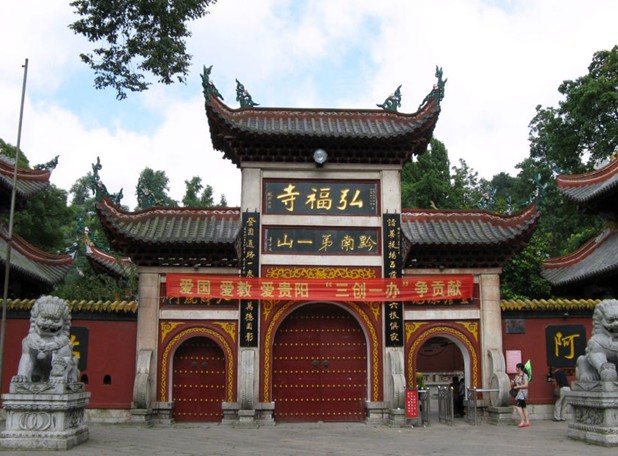弘福寺位于貴陽(yáng)市黔靈山群峰中心,距城約1。5公里,是十方叢林,為貴州首剎,向有“黔南第一山”之稱。弘福寺于1672年(清康熙11年)由赤松和尚開創(chuàng),“弘福”二字乃“弘佛大愿,救人救世;福我眾生,善始善終之意。赤松是為本寺開山始祖,佛法為臨濟(jì)一系之正宗,乃禪門五宗之一。
