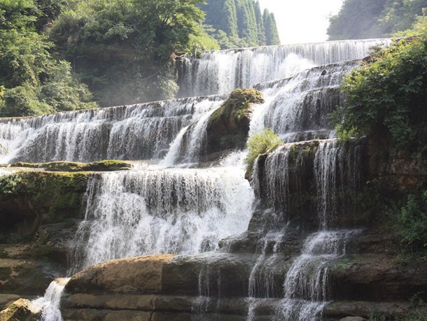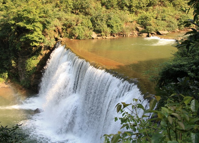景如其名,此時游人仿佛置身于一個一塵不染的世外桃源境地。河水清澈見底,河床怪石林立。游人依修文桃源神舟旅游開發(fā)公司新建的觀光棧道而行,繼金雕崖景點之后,但見犀牛潭景觀——數(shù)股從半崖中涌出的清泉,飛流直瀉,墜落碧綠的犀牛潭中。銀練高懸,水花飛濺,一幅天然的山水畫面。版權所有山東聊城聊之旅國際旅行社有限公司,轉載必究!但凡漂流者經過此景,皆有意蕩入泉下,接受泉水的洗禮,或曰洗去晦氣,或曰沾點清泉的靈性。還有一說,此道山泉能賜人以財運。順流而下,在漂流段的終點處,既是桃源風景區(qū)的接待處,也是景區(qū)游玩和食宿中心。此處更集中了大自然饋贈桃源河的精品——寬43米、37米落差的梯級大瀑布響水驚天,氣勢宏偉壯觀。站在瀑布下面的觀瀑臺,感受那水霧飛灑的靈氣,更令人心曠神怡。站在去接待中心的小橋上,仰望有波有折,一泉三態(tài)的三疊水瀑布,更有一番獨特的視覺享受。接待中心被流水纏繞,河灘、怪石、清泉,組合成一組天然的濱河泳場畫面。夜宿桃源度假中心,在潺潺流水的伴奏下,在清新水霧拂面的木屋里進入夢鄉(xiāng),必將在你人生的旅程中留下深刻的記憶。