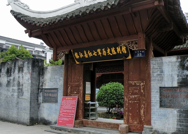 古州紅七軍軍部舊址位于貴州省古州中路西側(cè),原為清代鎮(zhèn)臺(tái)衙門,已被評(píng)為省級(jí)文物保護(hù)單位。1930年4月,紅七軍為擺脫國(guó)民黨桂軍對(duì)右江革命根據(jù)地的圍困,開(kāi)展游擊戰(zhàn)爭(zhēng),于30日擊潰黔軍第二師副師長(zhǎng)史遠(yuǎn)勛部,攻占榕江縣城(古州),紅七軍軍部駐清鎮(zhèn)臺(tái)衙門內(nèi),張?jiān)埔蒈婇L(zhǎng)和李明瑞總指揮在這里主持召開(kāi)軍事會(huì)議,接見(jiàn)各界人士,宣傳黨和紅軍的方針、政策。