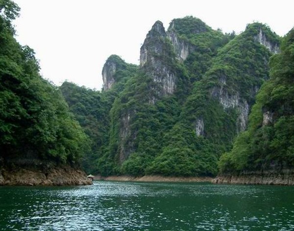景區(qū)以高峽平湖、瀑泉飛流、喀斯特為主體;山色水韻風(fēng)光迷人。“破鏡重圓”半含水中半露崢嶸;鴛鴦夫妻結(jié)隊(duì)?wèi)蛩?,情深意濃;奇妙的三疊水、珠落玉盤直瀉深潭;喊泉神靈有喊必應(yīng),呼之水出、止呼水隱;石峰神形如“孔雀開屏 ”、形態(tài)逼真;“大圣師徒”前往探幽,忙里偷閑,整個景區(qū)一灣一畫,一步一景,令游人忘返流連......。神秘的下舞陽,不是天堂勝似天堂。鮮明的個性特征之所撼動人心,主要在于下舞陽具有長江三峽之雄;蜀地蛾眉之秀;桂林漓江之美;陽朔勝景之幽而名冠天下。凡游覽過下舞陽的客人,無不恭維贊譽(yù)其幽谷、山色、水景為天下絕色、嘆為觀止。清代愛國將領(lǐng)林則徐曾在此留下著名詩章:
