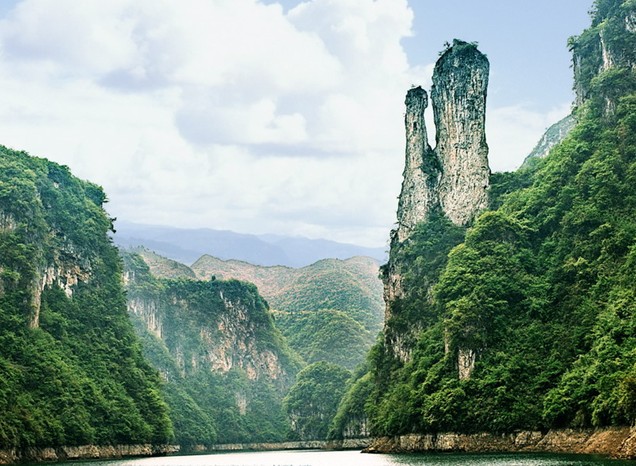 施秉上舞陽河景區(qū),位于貴州省黔東南自治州施秉縣西北部,距縣城8公里,規(guī)劃面積81平方公里,游覽景點(diǎn)27處。景區(qū)自然生態(tài)稱絕于世,原始植被郁郁蔥蔥,兩岸奇峰怪狀萬千;“姜太公釣魚”老態(tài)龍鐘;“仙人曬鞋”、 “一足撐天”,個性特別;“宮門雙厥”龍王神針天下一絕;“人面獅身”、“八仙過海”、“金猴望月”游人目不暇接;......27個景點(diǎn)像27顆翡翠明珠,鑲嵌于上舞陽河兩岸,青翠欲滴倒影漣漣,如天然盆景、如瑤池再現(xiàn)。整個景區(qū)層次分明、對比強(qiáng)烈、濃淡相間、疏密有序,構(gòu)成一副天然綠色藝術(shù)長廊。景區(qū)上段以雄奇見長;中段舒緩平展;下段清幽神往、形成天構(gòu)地設(shè)山情水韻為特色的水上極樂公園。游覽上舞陽景區(qū),猶如來到夢幻般的童話世界,令人如醉如仙。