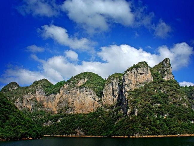 下舞陽河景區(qū)系舞陽河區(qū)十風景名勝大景區(qū)之一,位于鎮(zhèn)遠縣與施秉縣之間,規(guī)劃面積 121 平方公里,景點 33 處。景區(qū)以高峽平湖、瀑泉飛流為主體,山色水韻風光迷人。"破鏡重圓"半含水中半露崢嶸奇妙的三疊水珠落玉盤直瀉深潭;鴛鴦戲水,情深意濃;呼大令喊泉神靈有喊必應,之水出止呼水隱;山峰神態(tài)似"孔雀開屏",形態(tài)逼真;" 圣師徒"前往探幽 … …