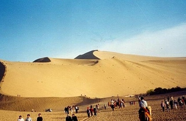是一種由流沙自然堆積的山體,因沙子會發(fā)出聲響而得名,在我國新疆、內(nèi)蒙古、甘肅等省區(qū)都有分布,有很高的旅游價值。如敦煌的鳴沙山,早就因其別具一格的情趣而著稱于世,而新疆木壘的鳴沙山卻一直不為人知。據(jù)說,木壘的鳴沙山是我國目前探知的最大的鳴沙山,其高度、面積都是敦煌鳴沙山無法比的。
