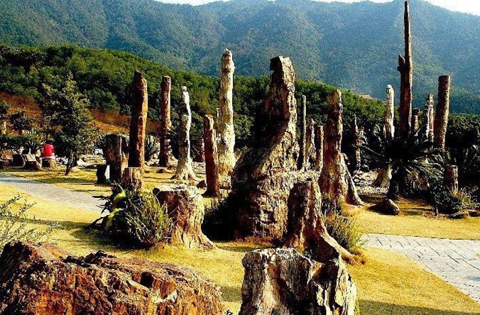硅化木又稱古樹化石,它是1.5億多年前侏羅紀松柏、蘇鐵、銀杏、真蕨、種子蕨等15種以上古喬木的遺骸。由于年代久遠和地質(zhì)變遷,樹木物質(zhì)與外界硅化物發(fā)生置換反應,使得這些巨大的古樹硅化成了堅硬發(fā)亮的石頭后得以保存至今。硅化木大面積完整地保存下奇臺縣奇特的古化石群作為“新疆一絕”吸引著眾多國內(nèi)外科學家和游客紛至沓來。