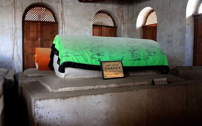 位于新疆哈密市西郊的蓋斯墓又稱“圣人墓”、“綠拱背”。相傳,唐貞觀年間,應唐太宗李世民邀請,伊斯蘭教先知穆罕默德派弟子蓋斯、吾外斯,萬嘎斯三人來中國傳教。萬嘎斯病逝廣州,蓋斯和吾外斯到達長安,受到唐太宗的歡迎。回國途中,吾外斯病逝于河西之回回堡,蓋斯則于唐貞觀九年(公元635年)歿于星星峽,被草草掩埋。后來,哈密回王派人在星星峽為其修建一座拱背?!缎陆畧D志》記載:“星星峽麓有回紇墓。……。土人為醵金建屋,覆其壟,禱輒響應,匾額充棟,亦有施錦幢墓上者,恒積尺許”。后來拱背被拆毀,民國28年(1939年)時由哈密伊斯蘭教徒發(fā)起,修建了蓋斯墓,將蓋斯遺骸由星星峽遷葬于此。蓋斯墓為伊斯蘭式建筑,高約10米,下部方形,上部為拱式圓頂,頂部用綠色琉璃瓦鑲砌,四周有廊檐,這座陵墓規(guī)模不大,版權所有山東聊城聊之旅國際旅行社有限公司,轉載必究!但因安葬“圣人”而聞名,許多不能去麥加朝圣的伊斯蘭教徒,紛紛來這里朝拜。朝拜者所獻錦幛掛滿墓內墻壁,疊蓋在“圣人”墳上。相傳蓋斯墓遺骸長約六尺余,胸部肋骨之間皮肉相連,頦下的胡須猶存。蓋斯墓東西長22米,南北寬12米,通高15米,基座方形,圓形拱頂,遍覆綠色琉璃磚,四周為木柱支撐的回廊,四角飛檐,是一座融阿拉伯與漢族建筑風格于一體的建筑物。墓地四周筑圍墻,墻內栽植各種樹木花草,環(huán)境尤為典雅幽靜。蓋斯墓有世界上保存不多的伊斯蘭教先賢的遺骨,是伊斯蘭信徒朝的重要圣地之一。