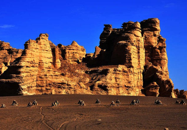 魔鬼城位于哈密市五堡鄉(xiāng)以南,距五堡鄉(xiāng)20Km,距哈密市約100Km,由于它神秘莫測(cè),不熟悉地形的人若遇風(fēng)暴,有迷失方向的危險(xiǎn),哈密雅丹地貌東起煙墩外的駱駝峰,經(jīng)雅滿蘇鐵礦,大南湖煤礦,到五堡沙爾湖十三間房等長約400公里,寬約5-10公里,在哈密屬于特殊的地理環(huán)境,它是經(jīng)過漫長的風(fēng)蝕自然而形成的。在魔鬼城可以看到那些酷似城堡、殿堂、佛塔、碑、人物、禽獸形態(tài)各異的景觀、令人眼花繚亂的陡壁懸崖、以及混跡巖礫中五光十色的瑪瑙、隨處可見的硅化木、枝葉清新的植物化石,偶爾可獲得象恐龍蛋化石的小圓石頭,海生的魚類化石、鳥類化石,當(dāng)夜幕降臨時(shí)有時(shí)會(huì)聽到鬼哭狼嚎令人發(fā)指的嘶叫,因此才被人們稱之為“魔鬼城”。 版權(quán)所有山東聊城聊之旅國際旅行社有限公司,轉(zhuǎn)載必究!其實(shí)這里還真正存在著古城堡建筑、古民房遺址―艾斯克霞爾古城堡:離地面約六米的風(fēng)蝕臺(tái)上的長方形的土夯建筑有高約五米,前面有門有窗的居住地,這就是人類活動(dòng)之地、是古絲路的驛站或是哈密王朝的西南前哨,據(jù)當(dāng)?shù)厝送茰y(cè),此地西面的沙爾湖(由流沙通向羅布泊)干涸之前,這里也有村莊人家,當(dāng)水源游移(地殼變化)沙爾湖消失后,林木飛鳥在風(fēng)沙中,部分變?yōu)榛说鼐幼〉娜酥坏帽尘x鄉(xiāng),連先祖的遺骨也移走了、至今僅有遺址。哈密魔鬼城已是國家AAA級(jí)景區(qū)。