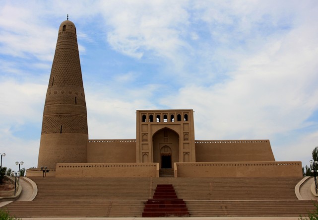 蘇公塔禮拜寺位于吐魯番市東南郊的葡萄鄉(xiāng)木納爾村,在蘇公塔景區(qū)內(nèi)。西距吐魯番2公里,東面與安樂(lè)古城相鄰。每逢肉孜節(jié)、古爾邦節(jié),穆斯林群眾,近的三人一群、五個(gè)一簇涌向禮拜寺;遠(yuǎn)的,騎毛驢、騎自行車(chē)、坐汽車(chē)從四面八方云集這里,頒經(jīng)禮圣,祈求福佑。