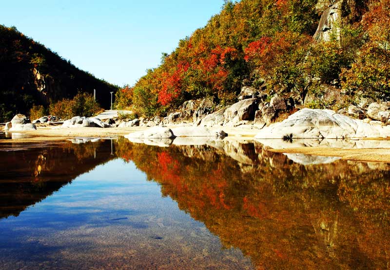 五龍?zhí)段挥趯毺炻下吹穆由缴?,在約五公里的深山峽谷中因瀑布跌落,自然形成了五個(gè)潭,依勢(shì)為黃龍?zhí)?、赤龍?zhí)?、白龍?zhí)?、紫龍?zhí)?、黑龍?zhí)?。版?quán)所有聊城聊之旅國(guó)際旅行社有限公司,轉(zhuǎn)載必究!據(jù)傳潭中因蟒蛇成龍而故名。黑龍?zhí)蹲顬閴延^,一掛80余米的瀑布從山崖的絕壁處跌落形成。水花飛濺,聲響震耳,活現(xiàn)一幅珍珠倒卷簾的壯觀畫卷。潭旁的絕壁石態(tài)千姿,西端有一峰高聳秀麗,其周圍的山景極有氣勢(shì)。順黑龍?zhí)断滦胁贿h(yuǎn)即為紫龍?zhí)叮幱谏焦葕A縫之中,西側(cè)行走艱難,行人需攀物方可前行。潭小、谷深、水清,一目了然,令人心曠神怡。白龍?zhí)吨車鼮殡U(xiǎn)峻,素有“一線天”之稱,陰森森地令人驚顫,觀之隨即就會(huì)油生“深潭若谷”之感。赤龍?zhí)渡絼?shì)坦緩,看上去讓人神秘莫測(cè)。最下面的黃龍?zhí)短洞蠖?,稱為“無(wú)底深潭”。五龍?zhí)兜奶毒把琶榔婷睿車纳骄案屈c(diǎn)綴得如詩(shī)似畫。嶺峰羅列,峰峰疊翠,各種各樣的樹木郁郁蔥蔥,各種各樣的怪石絕壁爛漫多姿。五龍?zhí)度缥孱w明珠鑲嵌在群峰峽谷之間,深山藏幽,幽而自然,版權(quán)所有聊城聊之旅國(guó)際旅行社有限公司,轉(zhuǎn)載必究!真是風(fēng)光無(wú)限。五龍?zhí)杜浜蠈毺炻_發(fā)旅游勝景,潛力巨大,前景可觀。