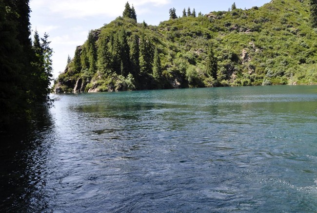 東小天池位于天池主湖東面500米,是天池主湖泄水而形成的,因傳說是小飛龍的巢穴,所以又稱飛龍?zhí)?。又傳說這里是西王母沐浴梳洗的地方,故又有“梳洗澗”、“浴仙盆”之稱。東小天池掩映在茂密的原始森林中,池邊灌木叢生,巨石羅列。池水墨綠幽暗,常起波瀾。東小天池人跡罕至,顯得特別陰森和神秘。它雖然不及西小天池大,但景觀特殊,又未經(jīng)任何修飾,意境不俗。