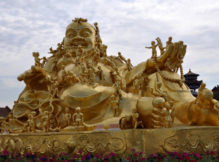許多老新疆人只知道紅山、妖魔山,卻并不一定知道紅光山。傳說紅光山是塊傳風(fēng)水寶地,可山上并無紅光可言,基本上都是黃土構(gòu)成,不見有石塊、石層。這一帶以前被稱為紅光公社,時(shí)事看機(jī)遇,紅光公社的農(nóng)民并沒有因?yàn)閾碛辛诉@塊風(fēng)水寶地而變得多富裕。當(dāng)年烏魯木齊河洪水泛亂成災(zāi),河下游是荒蠻野灘、亂石土坑。解放后修了和平渠疏通水路,并在廢棄的河道上修筑了河灘公路,于是發(fā)展成今天烏魯木齊市。再后來,烏魯木齊又在城市的荒山綠化基礎(chǔ)上,開發(fā)建設(shè)了眾多的生態(tài)文化旅游園區(qū),紅光山生態(tài)文化旅游園區(qū)就是其中的一支新秀。紅光山上建造了碩大無比的銅佛后,烏魯木齊人、全疆各地的人乃至外地人才知道烏魯木齊有個(gè)紅光山,山上有個(gè)大銅佛,有個(gè)頗有氣勢磅薄廟宇……
