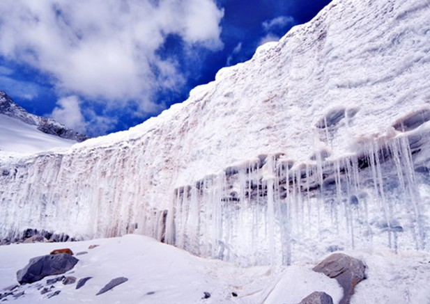 1號冰川屬雙支冰斗——山谷冰川,版權所有山東聊城聊之旅國際旅行社有限公司,轉載必究!長2.4公里,平均寬度500米,面積1.85平方公里,最大厚度140米,年均運動速度約5米,底部海拔高度為3740米。冰川內部晶瑩蔚藍,冰面裂隙縱橫;金字塔般的角峰,鋸齒形的刀脊,弧形的冰川終磧和喧騰的冰川河獨具魅力,令人震撼。在1號冰川下面海拔3500米以上,可以看到成層的槽谷、巖坎、巖盆、冰斗及狀似綿羊脊背的羊背石等冰蝕景觀,在海拔2800米以上的谷地保存著各時期的冰川堆積物。