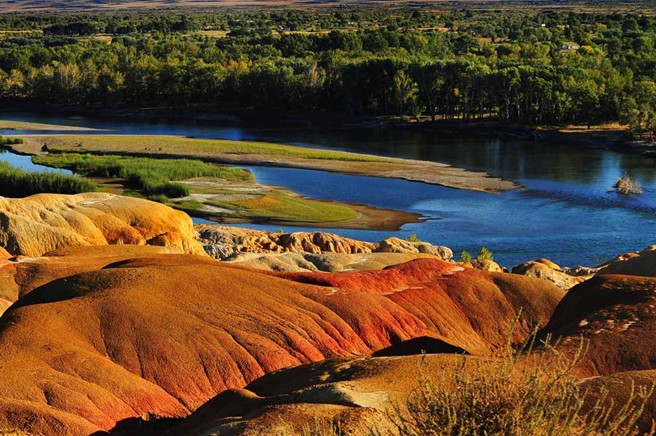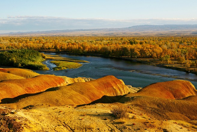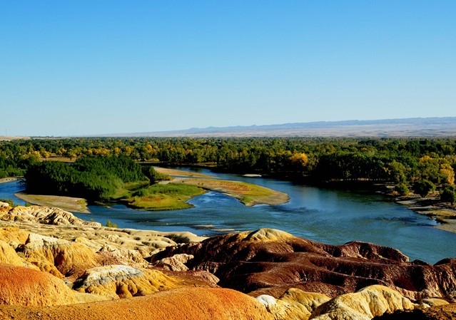 五彩灘一河兩岸,南北各異,是國家4A級(jí)景區(qū)。五彩灘又稱五彩河岸,位于額爾齊斯河流域,由于長期受風(fēng)蝕水蝕以及淋溶等自然作用的影響而形成的,屬于典型的雅丹地貌,“雅丹”是地理學(xué)名詞,維吾爾語“險(xiǎn)峻得土丘”之意。其南邊是我國唯一向西流入哈薩克斯坦--俄羅斯--北冰洋的額爾齊斯河,僅次于伊犁河的新疆第二大河。