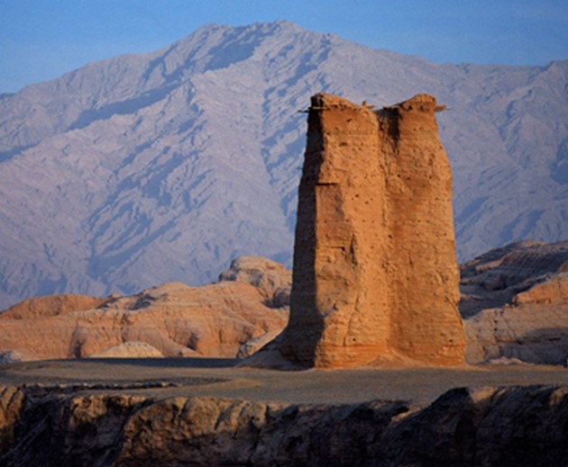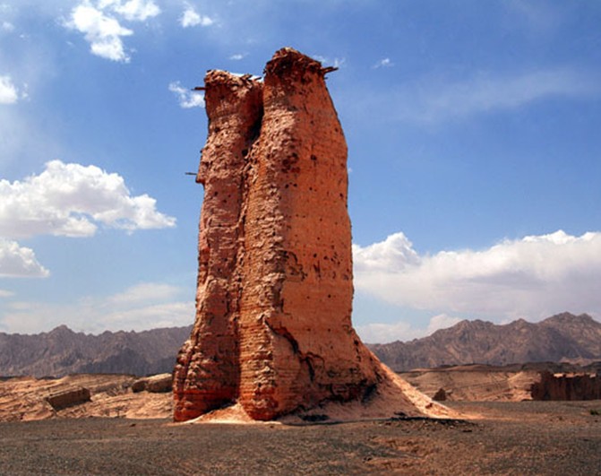 位于庫(kù)車(chē)縣城西北鹽水溝東側(cè)的克孜爾尕哈烽燧,在維吾爾語(yǔ)中為“紅嘴老鴰”或“紅色哨卡”之意。