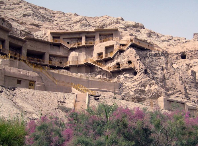 克孜爾千佛洞(維吾爾語:Qizil Ming Öy),又稱克孜爾石窟或赫色爾石窟,中國佛教石窟,1961年公布的第一批全國重點文物保護單位之一,位于新疆拜城縣克孜爾鎮(zhèn)東南7千米明屋塔格山的懸崖上,南面是木扎特河河谷。