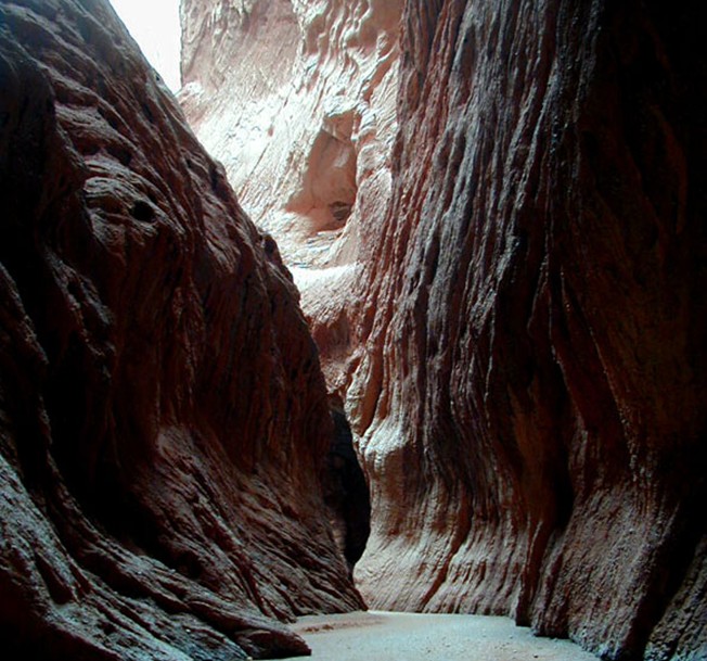 天山大峽谷又稱克孜利亞大峽谷,位于新疆阿克蘇地區(qū)庫車縣北部,(古稱龜茲)城北64千米,北緯42°8′,東經(jīng)83°5′。呈東向西縱深長約5.5公里。為紅褐色巖石經(jīng)風(fēng)雕雨刻而成,峽谷曲徑通幽,別有洞天,山體千姿百態(tài),峰巒直插云天,溝中有溝,谷中有谷。南天門、幽靈谷、月牙峽、虎牙橋、魔天洞、雄師淚等景觀造型生動,形態(tài)逼真。距谷口1.4公里處的山崖上有一處唐代石窟,版權(quán)所有山東聊城聊之旅國際旅行社有限公司,轉(zhuǎn)載必究!窟內(nèi)南、北、西壁上有殘存壁畫和漢文字。距峽谷700米處另有一峽谷,與神秘峽谷相伴。天山神秘大峽谷,集人間峽谷之妙,兼天山奇景之長,蘊萬古之靈氣,融神、奇、險、雄、古、幽為一體。景異物奇,令人神往。1999年發(fā)現(xiàn)后,游人日益俱增;2002年元月榮升為國家AA級旅游名勝風(fēng)景區(qū)。為古絲綢之路黃金旅游線上新增了一顆璀璨的明珠。神秘的“天山大峽谷”距離庫車縣城約70公里,谷口十分開闊,深谷之中卻是峰回路轉(zhuǎn),時而寬闊,時而狹窄,有些地方僅容一人側(cè)身通過。谷底比較平坦,兩側(cè)是高聳的石壁,腳下是細沙,有些路段還一層淺淺的積水。谷內(nèi)奇峰異石千姿百態(tài),數(shù)不勝數(shù),神犬守谷、旋天古堡、顯靈洞、玉女泉、臥駝峰等景觀個個形態(tài)逼真。神秘而久遠的的阿艾石窟,距離谷口不足2公里,高懸于絕壁之上,最初僅可攀著30多米高的懸梯而上,現(xiàn)已修建石階棧道。據(jù)專家鑒定,石窟建于盛唐初期。石窟很小,深不足5米,約一人高,洞頂呈拱形。窟內(nèi)三面皆有殘存的壁畫,而壁畫上竟然罕有地出現(xiàn)了漢字,與古西域地區(qū)其他數(shù)百座石窟相迥異,充分顯示漢文化的痕跡。