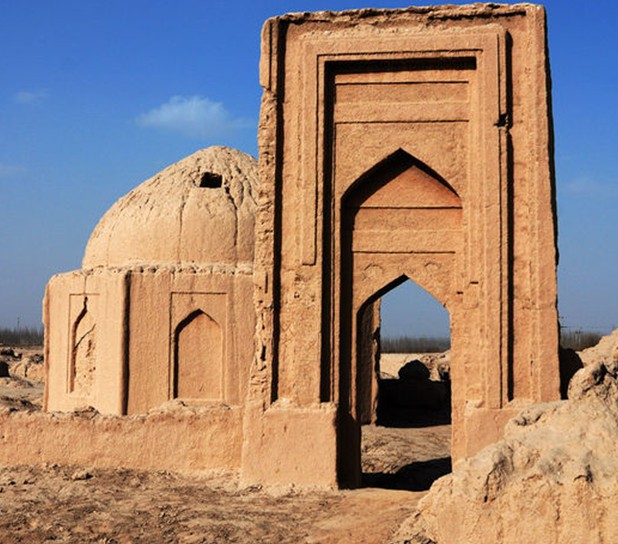 這是一片據(jù)傳已有數(shù)百年歷史的維吾爾古墓群。起伏錯(cuò)落的墓葬,綿延數(shù)平方公里。既有土垣環(huán)列的家族墓園,也有形單影只的孤冢墳丘;既有高大氣派的墓門拱拜,而更多的是排列有序的平民墳塋。在這里,游人可更多地了解到維吾爾族葬喪習(xí)俗,還可通過雕飾精巧造型別致的墓門、墓室外,進(jìn)一步了解到維吾爾族建筑、繪畫等藝術(shù)風(fēng)格。