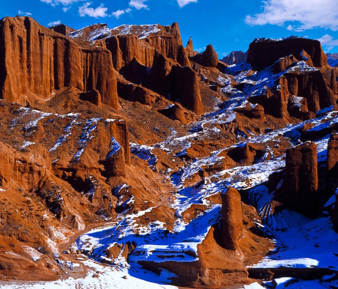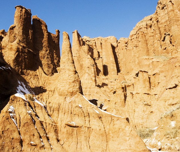 溫宿神秘大峽谷是2600萬年前內陸湖泊沉積的地層。由距今一億多年前的中生代的白堊紀,經過億萬年的洪水、雨水沖刷和勁風吹蝕共同作用而形成的。全景為巖鹽喀斯特地貌和峽谷雅丹地貌為代表的地質遺跡和地質景觀。目前大峽谷開發(fā)的路段溝長約10幾公里,南北向,寬處約200至300百米,狹窄處僅可一人通過。版權所有山東聊城聊之旅國際旅行社有限公司,轉載必究!走進大峽谷,峽谷兩側因風吹日蝕,雨水沖刷,形成了許多神奇肅穆令人嘆為觀止的傳神奇景,如:英雄谷、幽情谷、雙塔谷、紫瀾山、胡楊雙雄、萬僧朝圣、千年古堡、千山雄風、太空來客、驛路城池、雙塔爭鋒、情俑、千古壁畫、千屋萬塔、一線云天、星河飛瀑、三心石、二意柱、巨輪飛渡、赤柱坡、雄鞭口、望心門、赤砂墩等氣勢壯觀的100多處難于用語言文字表達清晰的山體造型。英雄谷,男人谷,情人谷中的—生命之本和生命之源是大峽谷的鎮(zhèn)谷之寶。