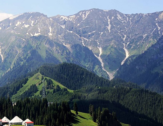 蒙語(yǔ)意為“金山”。 位于新疆準(zhǔn)葛爾盆地的東北側(cè),是天山北出支脈,也是新疆和蒙古的界山。民諺云“阿爾泰山七十二道溝,溝溝有黃金”,因其盛產(chǎn)黃金,故名。阿爾泰山跨中、俄、哈、蒙四國(guó),長(zhǎng)2000余公里,呈西北----東南走向。西北段在哈薩克斯坦和俄羅斯境內(nèi),東南部在蒙古境內(nèi),新疆阿爾泰山為中段南坡,長(zhǎng)500多公里,寬80――150公里不等,山體平緩,從山麓到山頂呈階梯逐漸上升,山脊高度3000米以上,最高的友誼峰海拔4374米,在中、俄、蒙國(guó)界上。阿爾泰山風(fēng)景秀麗,版權(quán)所有山東聊城聊之旅國(guó)際旅行社有限公司,轉(zhuǎn)載必究!氣候宜人,是著名的風(fēng)景名勝區(qū)。喀納斯、布爾根、卡拉麥里山、福海、金塔斯等眾多的自然保護(hù)區(qū)隱若其間,神秘莫測(cè)。著名的阿爾泰山巖畫,綿延千余公里,遍布山間溝溝坎坎,是古代阿爾泰游牧民族的智慧產(chǎn)物,號(hào)稱“巖壁上的敦煌”。