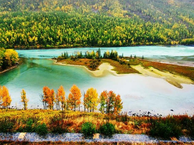 臥龍灣,是由喀納斯河在此長期側蝕沖刷而形成一連串岸線曲折的河灣組成。河流在此,流速減緩,水面柔波浮動。在Ω形河灣兩側發(fā)育兩個半島狀平臺,河曲上為月牙形平臺。河灣內(nèi)發(fā)育兩個小心灘,像兩個巨大的腳印。版權所有山東聊城聊之旅國際旅行社有限公司,轉載必究!傳說是神仙也難以抗拒美景的誘惑,下凡賞景時所留。下游為臥龍灣平臺,長800米,寬450米,面積3.6萬平方米。登上東側公路旁海拔1500米處的側磧平臺,俯視Ω形河曲全景,恰似一條蛟龍盤臥嬉水,臥龍灣由此得名。