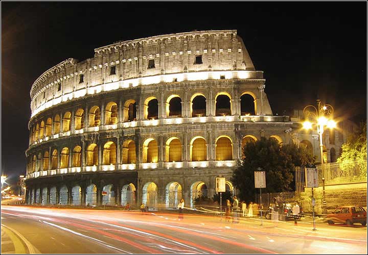 羅馬斗獸場,亦譯作羅馬大角斗場、羅馬競技場、羅馬圓形競技場、科洛西姆、哥羅塞姆,原名弗萊文圓形劇場(Amphitheatrum Flavium),建于公元72至82年間,是古羅馬文明的象征。遺址位于意大利首都羅馬市中心,它在威尼斯廣場的南面,古羅馬市場附近。從外觀上看,它呈正圓形;俯瞰時,它是橢圓形的。它的占地面積約2萬平方米,最大直徑為188米,小直徑為156米,圓周長527米,圍墻高57米,這座龐大的建筑可以容納近九萬人數(shù)的觀眾。