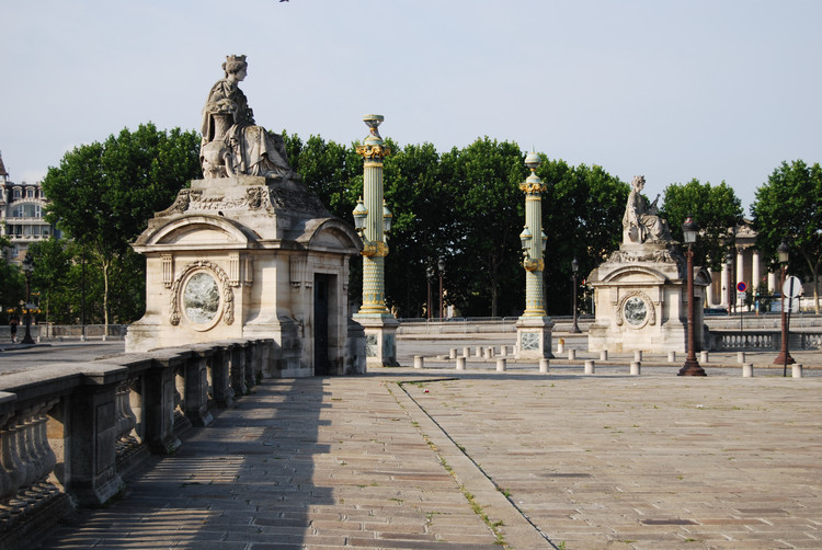 在路易 • 菲利普時(shí)代(1835-1838), 建筑設(shè)計(jì)師希托夫(Hittorf)受命完成廣場(chǎng)的規(guī)劃建設(shè),為了尊重廣場(chǎng)的設(shè)計(jì)師雅克•昂日•卡布里耶的原創(chuàng)意,希托夫?yàn)閺V場(chǎng)四周加上了欄桿及以下建筑: