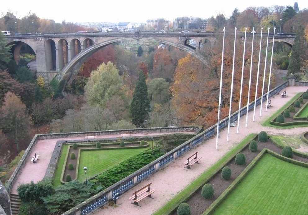 亞當夫吊橋 亞當夫吊橋是盧森堡的市標之一,橋跨越峽谷,很壯觀,由火車站外過馬路沿AUENUELIBERTE走10分鐘就到。