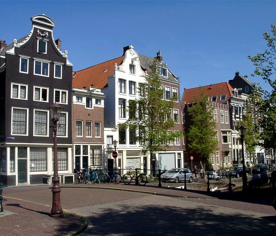 阿姆斯特丹顯得古老而極有味道。所有三層和四層的小樓房被藍(lán)色、綠色和紅色精心地裝飾著,可愛得就象假的一般。這些玩具一般的樓房的門,是那么的狹小,僅能容得一個人走進(jìn)。古時此地有一條奇怪的法律,門越大交納的稅就越多,無奈的人們只好將門盡量做小,卻把窗戶做得很大,家具什么的都從窗口吊運進(jìn)出。所有小樓房的頂部,都有數(shù)個伸出來的鐵鉤子,以固定吊運物品所用的繩索。