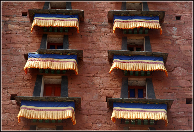 合作是甘南藏族自治州的州府,我們的車清晨從拉卜楞寺往四川方向開,進(jìn)城路上首先看到的第一座高樓就是這座深紅色的四方形藏式石樓。在藏區(qū),所有的明堂華廈都是神佛的居所,這座高樓也不例外。它的全稱是“安多合作米拉日巴九層佛閣”,名字雖然有點(diǎn)兒長,卻也講得很明白:這是在安多藏區(qū)合作市為紀(jì)念米拉日巴而修建的佛閣。