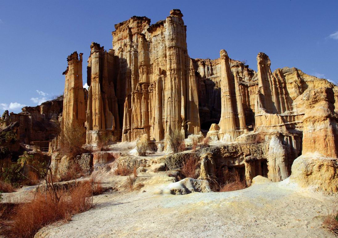 云南土林,分布較廣,其中以元謀縣的物茂土林、班果土林、浪巴鋪土林為佳。它與l陸良彩色沙林、路南石林并稱之為“云南三林”。元謀物茂土林位于元謀縣境內(nèi),距縣城32公里,是個不可不去的地方。