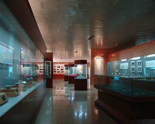 中國宋瓷博物館新建成不久,位于四川遂寧。它的外觀以南宋青釉鼓腹瓶為模型,青釉般的玉色在春日的陽光下,泛著微光;鼓腹狀的穹形構筑隱含“有容乃大”的包容理念,不失為同類博物館的經典設計。據介紹,這座占地面積5000平方米,總投資1800多萬元的博物館是目前全國唯一一座專業(yè)宋瓷博物館。走市場之路,建國有博物館,于它是一種新鮮嘗試。