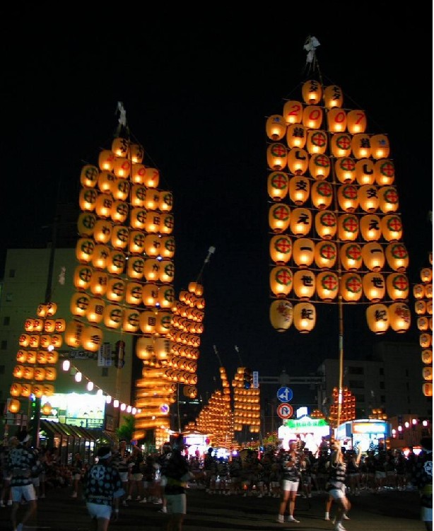 生鬼節(jié):被指定為國(guó)家重要無(wú)形民俗文化財(cái),流傳于日本東北地方男鹿半島。兩個(gè)戴著鬼面具露著兩支大獠牙的人(一個(gè)是紅臉,一個(gè)是青臉),身上穿著稻草衣,握著菜刀,提著桶,挨家挨戶地拜訪居民,大聲叫著嚇唬那些不勤勞的男人、愛哭的小孩以及不愿意做家務(wù)的媳婦。該儀式,除了秋田縣能代市,山形縣游佐町、巖手縣大船渡市三陸町吉浜等多個(gè)東北一帶沿海地方都有存在。[20]秋田竿燈祭:日本東北地區(qū)代表性的夏季節(jié)慶,與青森縣的耐布它祭、仙臺(tái)的七夕祭并稱為東北三大祭。竿燈把幾十個(gè)馬燈整齊地掛在一個(gè)粗竹竿上,竹竿的頂端系著“御幣(剪成細(xì)條的紙)”,版權(quán)所有聊城聊之旅國(guó)際旅行社有限公司,轉(zhuǎn)載必究!撐竿的人將竿燈或托于手掌,或頂于額頭,或支于肩,或載于腰腹,猶如玩耍中國(guó)雜技。西馬音內(nèi)盂蘭盆舞會(huì)(羽后町):為“日本三大盂蘭盆舞會(huì)”之一,參加者身著傳統(tǒng)服裝,戴著斗笠,并用黑布蒙住臉,伴隨著用笛子、鼓、三弦的演奏,一直舞蹈至深夜。西馬音內(nèi)盆踴,已被列為重要無(wú)形民俗文化財(cái)產(chǎn)。舉行時(shí)間是8月16日至18日。