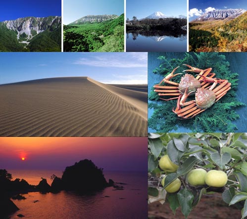 鳥取縣位于日本列島本島的西端,中國地方的東北部,是全日本人口最少的縣,因盛產(chǎn)“二十世紀(jì)梨”和“富有柿”而聞名于日本。土地面積占日本總面積不足1%,近90%土地為山地,由山地流向日本海的日野川、天神川、千代川等,分別在下游形成米子、倉吉、鳥取三平原,擁有日本最大的大自然人工天成的沙丘鳥取沙丘。氣候相對溫暖,從春到秋多晴天,冬天有降雪,四季變化鮮明。主要產(chǎn)業(yè)有電機(jī)、食品、紙漿、造紙、金屬制品等。海岸線長約一百三十公里,海岸平緩,有很多天然良港,漁業(yè)發(fā)達(dá)。