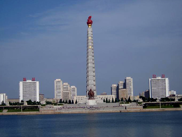 主體思想塔(????? Juche Tower) 位于朝鮮民主主義人民共和國(guó)首都平壤市市中心的大同江畔,是為祝賀金日成七十壽辰而建的,塔及其周?chē)綄俳ㄖ嫉乜偯娣e15萬(wàn)平方米。1982年4月15日竣工揭幕。主體思想塔是金日成主席創(chuàng)立的“主體思想”的象征。塔的正面,建有高30米、重33噸的象征工人、農(nóng)民、知識(shí)分子的三人群像,左右是以“主體工業(yè)”、“豐年”、“學(xué)習(xí)之國(guó)”、“無(wú)病長(zhǎng)壽”、“主體藝術(shù)”、“銅墻鐵壁”為主題的花崗巖群像。