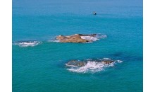 嶺下海灘長達8km,海中距岸l00m處水深才1.5m,距岸200m水深2m。沙白、水清、浪小,是一個理想的天然游泳海灘。嶺前奇山眾多,有周恩來、葉挺同志當(dāng)年搶渡香港下海處的龍石,汕尾市境內(nèi)最大的摩嶺刻“鎮(zhèn)海石”,明欽差大臣成大猷、鄭岳山刻“鎮(zhèn)海石”,“揚威止水”于鎮(zhèn)海石上。該處以“神、海、沙、石”兼?zhèn)涠劽?,中國書法家協(xié)會主席啟功先生題“粵東旅游黃金海岸”于石上。