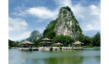 廣東肇慶市的星湖風景名勝區(qū),是中國南方著名的旅游勝地。很多游人對它評價很高,認為它兼有杭州西湖和廣西桂林的勝景。星湖位于肇慶市北郊4公里處,湖面約8000畝,大小和西湖相近。整個湖面被蜿蜒交錯的湖堤劃分為五個湖:東湖、青蓮湖、中心湖、波海湖、里湖。湖堤總長20余公里,堤上楊柳、鳳凰木成行,宛如幾條綠色帶子飄落在碧澄的水面上。