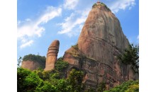陽元山瀏覽區(qū)與丹霞山主山隔河相望,因有天下奇景陽元石而得名。主要景點(diǎn)南有陽元石,北有坤元山(玉女?dāng)r江),一陽一陰遙相對(duì)應(yīng);從陽元石背后經(jīng)云崖棧道可上至陽元山頂?shù)募味萃?,然后從西端的?xì)美寨經(jīng)九九天梯下山可以觀賞到玄機(jī)臺(tái)和天罡橋,還可見到通泰橋(最大的天生橋)、海豹石、混元洞等美麗景觀。