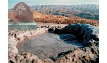 克拉瑪依泥火山位于獨山子北部的一個山峰上,主要有兩個噴出口兩者相距約100余米,較大的一個噴口直徑約60厘米,高出地面1米余。噴口內(nèi)是粘稠的泥漿,泥漿呈灰綠色,略帶油氣味,不停的向外翻泥泡,匯集的泥漿沿西南側(cè)的開口外溢。涌出的泥流在地表形成錐型丘,底部直徑在10米以上,表面是干裂的泥漿塊。泥火山所在的獨山子亦很有特色,該山的南北長約7千米,東西寬約6千米,最高峰1283米,孤立的突兀于傾斜平原之上。