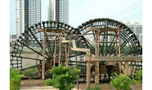 黃河水車,位于黃河河灣,距沙坡頭約6至7公里。這里聳立著6架木制巨型水車,經河水沖擊,日夜緩緩旋轉,并發(fā)出嘩嘩的巨大聲音,引起了游客的無限興趣。水車是黃河沿岸一種古老的提水灌溉工具。