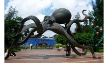 廈門海底世界占地17.5公頃,總建筑面積7500平方米。它是由新加坡華僑與鼓浪嶼風景區(qū)建設(shè)開發(fā)公司合作興建的,總投資1000萬美元。這座花壇簇擁的海藍色水晶宮建筑,第一期工程先后建成了海洋館、企鵝和淡水魚館。其入口處在主體建筑外60米地方有一個設(shè)計獨特、別具一格、張牙舞爪的章魚雕,高6米、跨徑11.2米。它是廈門海底世界的標志性建筑,也是游客們首先拍照留念的景觀。