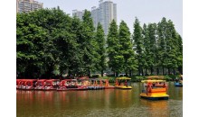 廣州東山湖公園建于1958年,1959年5月1日正式向游人開放,公園面積33.114公頃,其中陸地面積12.2公頃,水體面積20.914公頃。是區(qū)級綜合性文化休息公園。園內(nèi)山水相依,湖水清澈見底。湖中有5個半島和 1個孤島,島間以九曲橋、五孔橋、拱橋相連,與各具特色的亭、廊、榭、閣、花架連為一體。該園以紫荊、柳堤為主景,有喬灌木110種,1萬多株。因此,每當春日,景色十分迷人。
