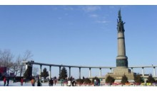 防洪紀念碑建于1969年,是為“毛澤東同志為武漢人民戰(zhàn)勝1954年洪水題詞”而建的紀念碑。該碑地處武漢市漢口濱江公園江堤上,面向大江,占地1160平方米。臺基高4.9米,正面與兩側(cè)設(shè)寬大臺階,四周圍以護欄。碑身高37米,碑頂立直徑1.8米五角紅星,下飾紅綢、葵花簇擁天安門圖案。碑身正面鑲嵌乳白色大理石,上有用鋁板鍍金制成的毛澤東親筆題詞:“慶祝武漢人民戰(zhàn)勝了一九五四年的洪水,還要準備戰(zhàn)勝今后可能發(fā)生的同樣嚴重的洪水?!?/p>