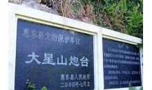 大星山炮臺位于港口鎮(zhèn)最南端的大星山西南面,是平海諸炮臺中保存得相當(dāng)完好的炮臺。東、西、南三面臨海,地勢險要,易守難攻,是歷代兵家必爭之地。鴉片戰(zhàn)爭前夕,帝國主義列強(qiáng)不斷派兵侵略中國,為抵御外來侵略,清康熙五十六年(1718年),廣東、廣西地方軍務(wù)兼理糧餉兵部右侍郎兼都察院右副都等捐銀在此建造炮臺,筑成軍事要塞。炮臺用麻石砌筑,周長295米,平均高3.5米,寬2.55米。