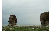 成吉思汗拴馬樁 - 風(fēng)景成吉思汗拴馬樁位于呼倫湖西岸, 距新巴爾虎右旗所在地阿拉坦額莫勒鎮(zhèn)38公里,離滿洲里市88公里,是一處三面環(huán)水的峭壁。南臨一湖碧水,放眼望去,石壁嶙峋峭拔,光滑如刀削;北、東面呈陡坡,下臨湖灣,只有西部為緩坡與湖岸相連,山頂上有一座高大的涼亭。